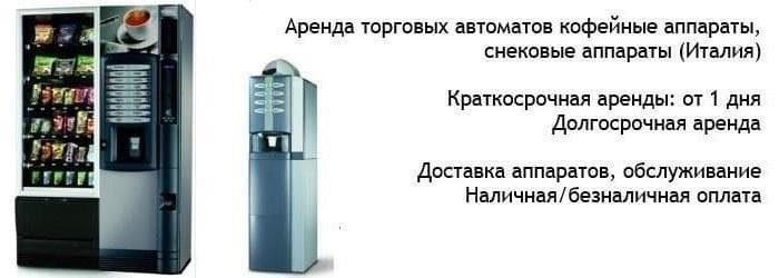 Если Вам нужна не аренда, а бесплатная установка и обслуживание кофейных и торговых автоматов, тогда вам сюда.
